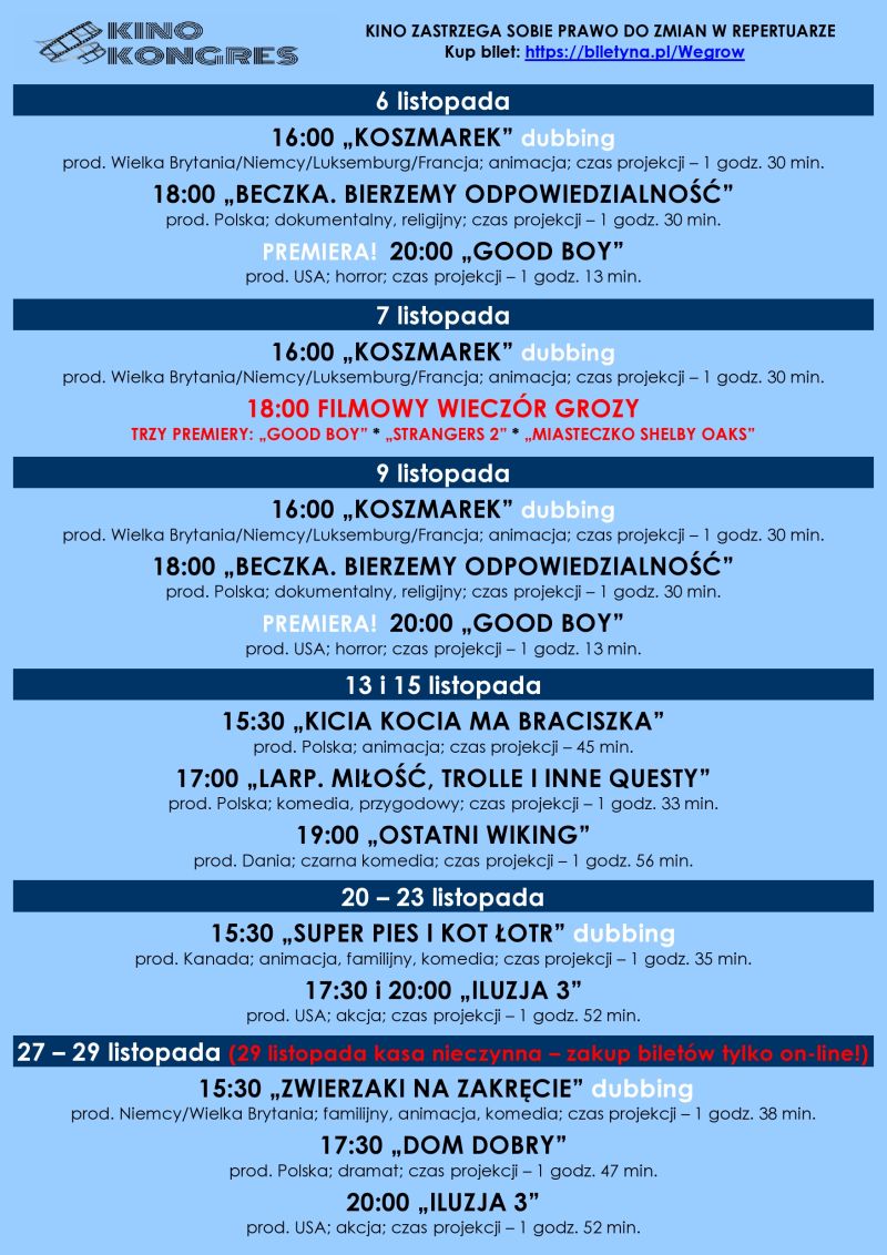 Repertuar kina Kongres - listopad 2025Archiwum
