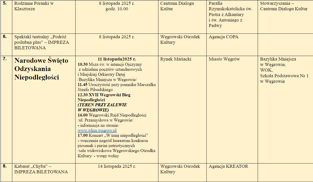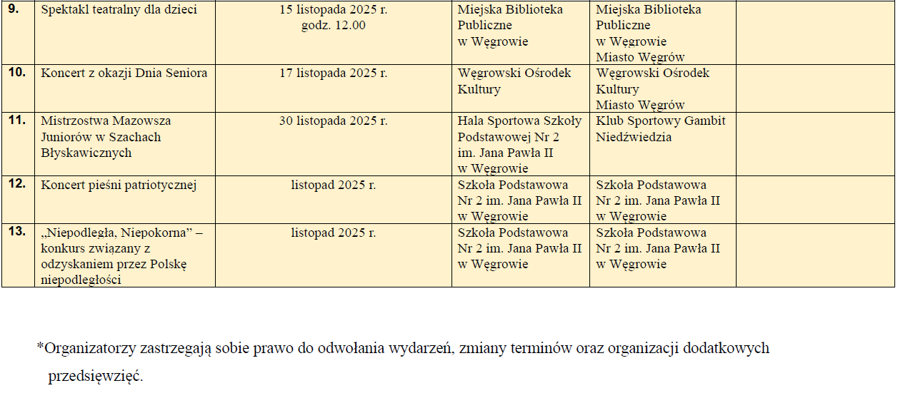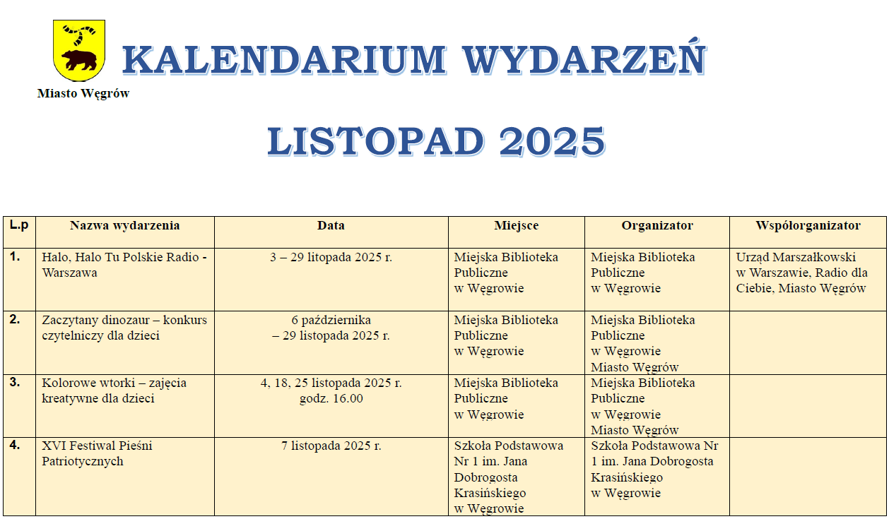 Kalendarium wydarzeń listopad 2025Archiwum